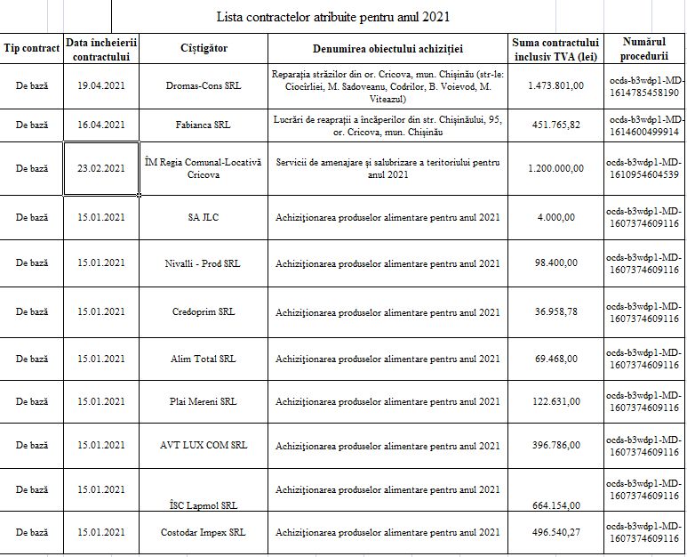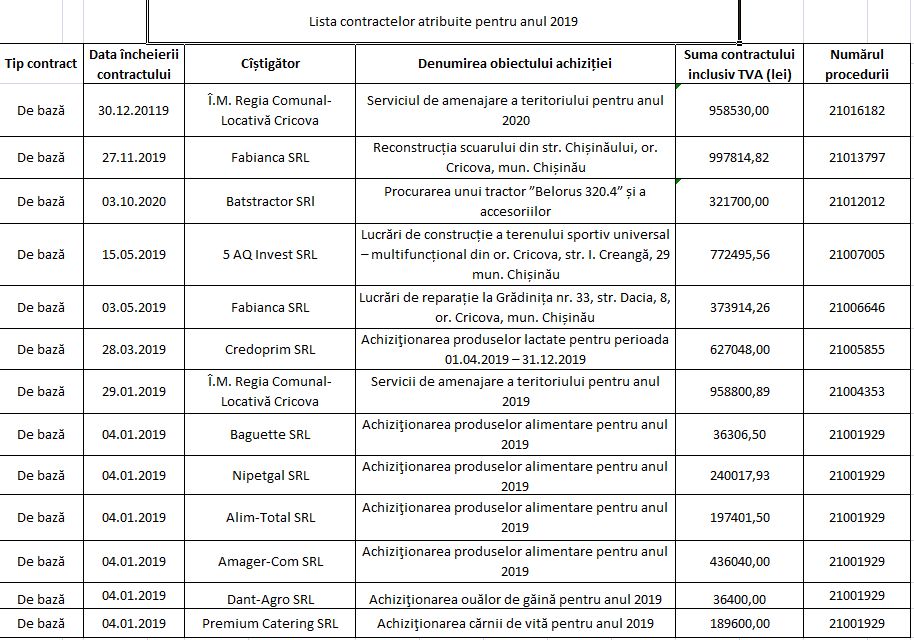 Lista contractelor atribuite pentru 6 luni 2024