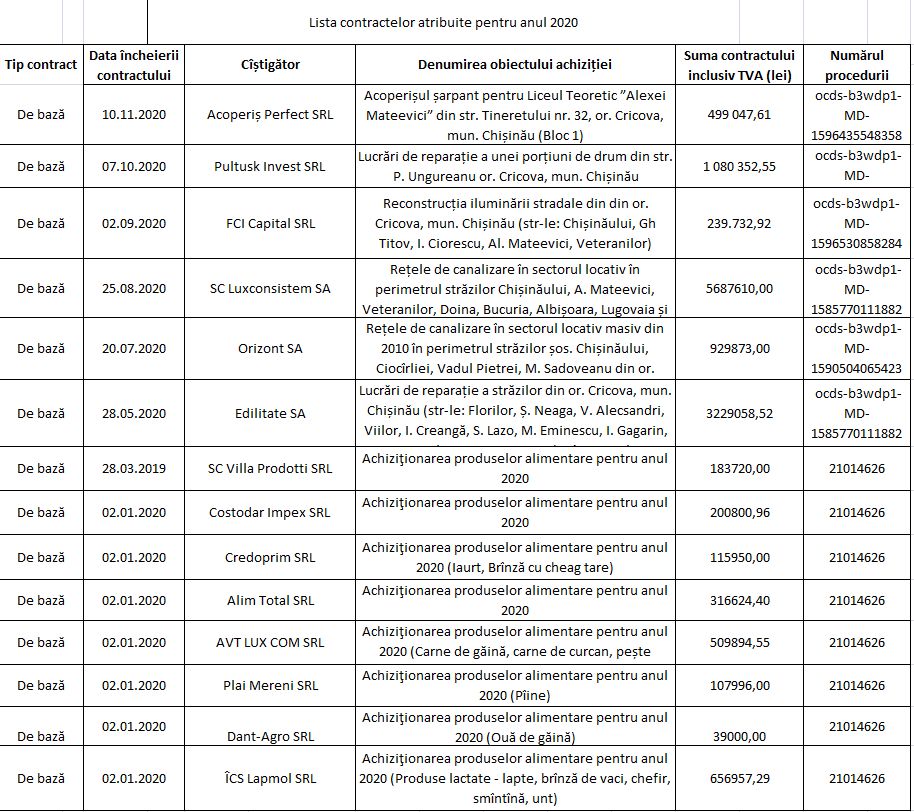 Lista contractelor atribuite pentru 9 luni ale anului 2025